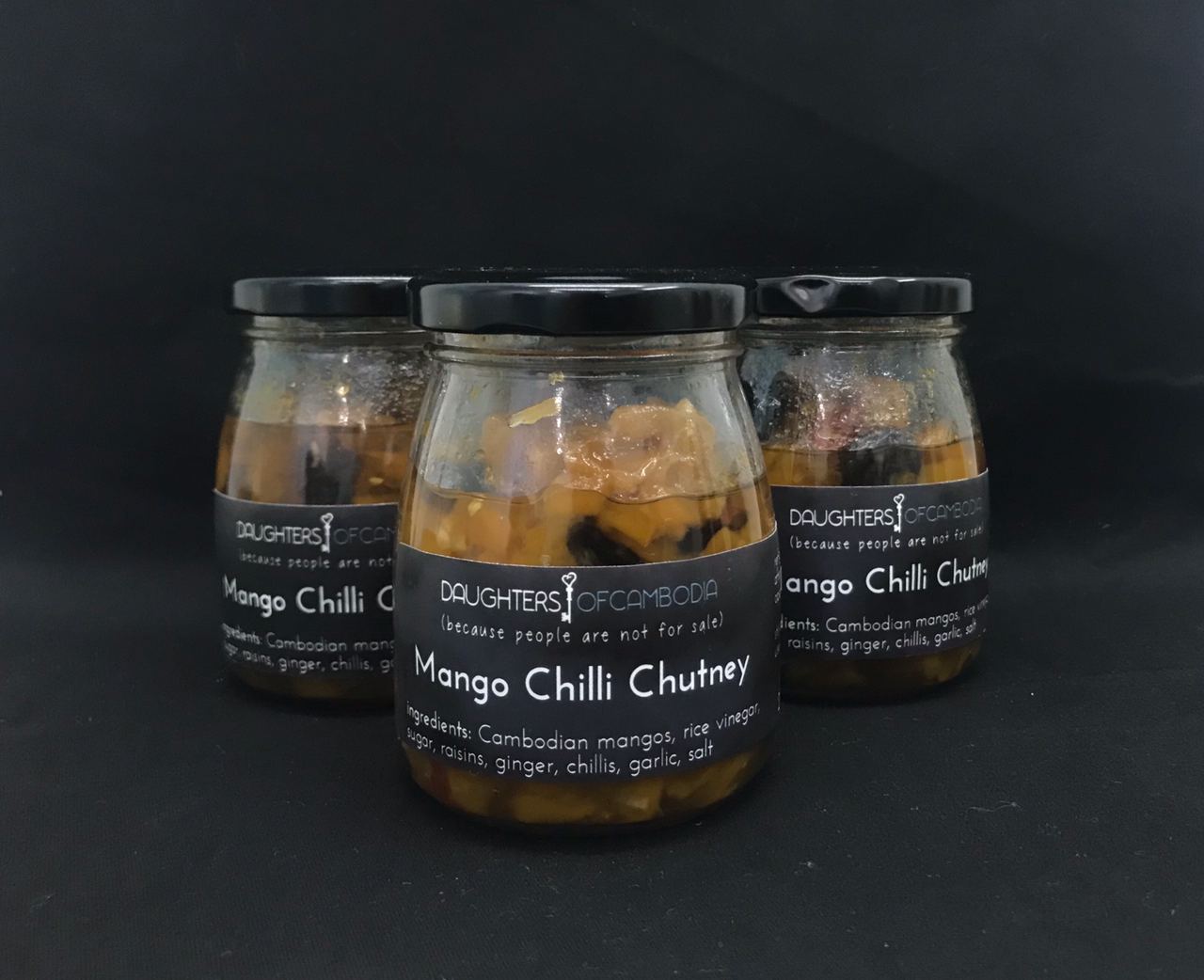 Ingredients: Cambodian mangos, rice vinegar, sugar, raisins, ginger, chillis, garlic, salt.