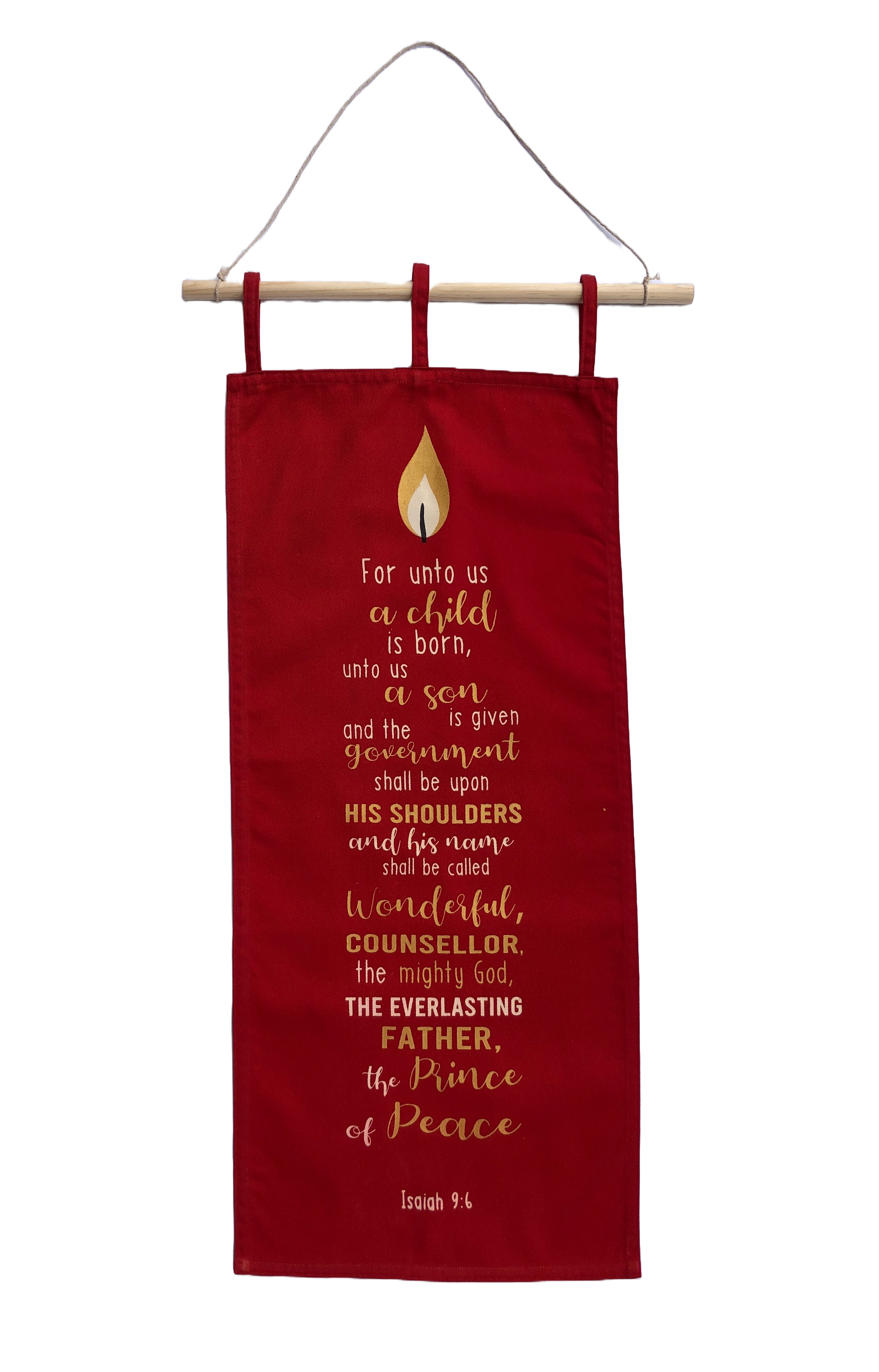 Unto Us A Child is Born - Christmas Wall Hanging with timber dowel rod.